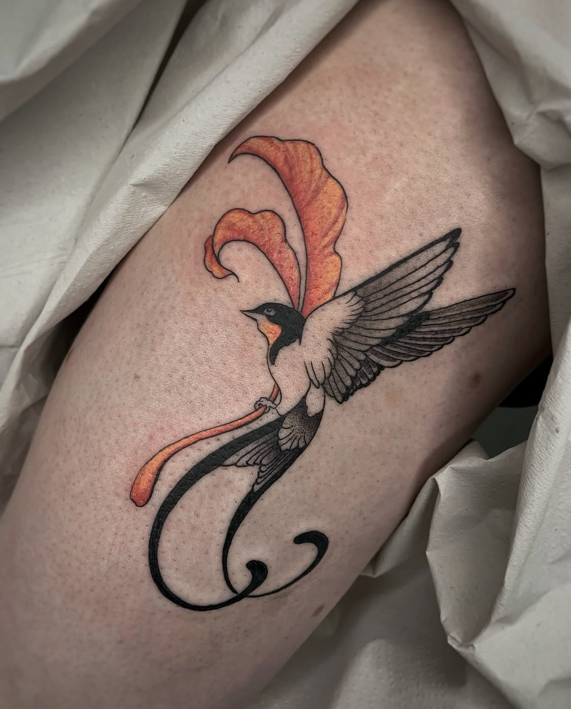 El estilo neotradicional parte de las bases del tatuaje tradicional, pero las lleva a un nuevo nivel visual. Mantiene la fuerza del trazo y la claridad de las formas, pero incorpora mayor complejidad en el color, el sombreado y el detalle.